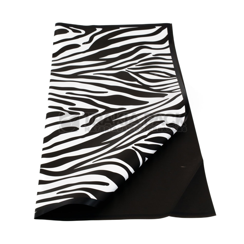 Черен двустранен целофан с мотив зебра, размер 58×58 см, комплект 20 броя – идеален за елегантни и контрастни декоративни оформления.