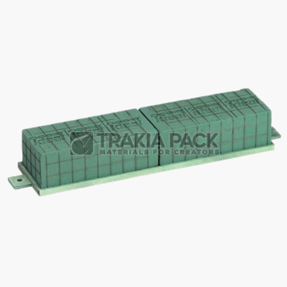 Двойна пиафлора с подложка и мрежа Oasis с размер 51x12x8 см, предназначена за професионални флорални аранжировки.