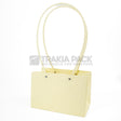 Чантички в цвят екрю с релефни ромбове, размер 18×10×12 см, комплект 10 броя – подходящи за подаръци и цветни аранжировки.