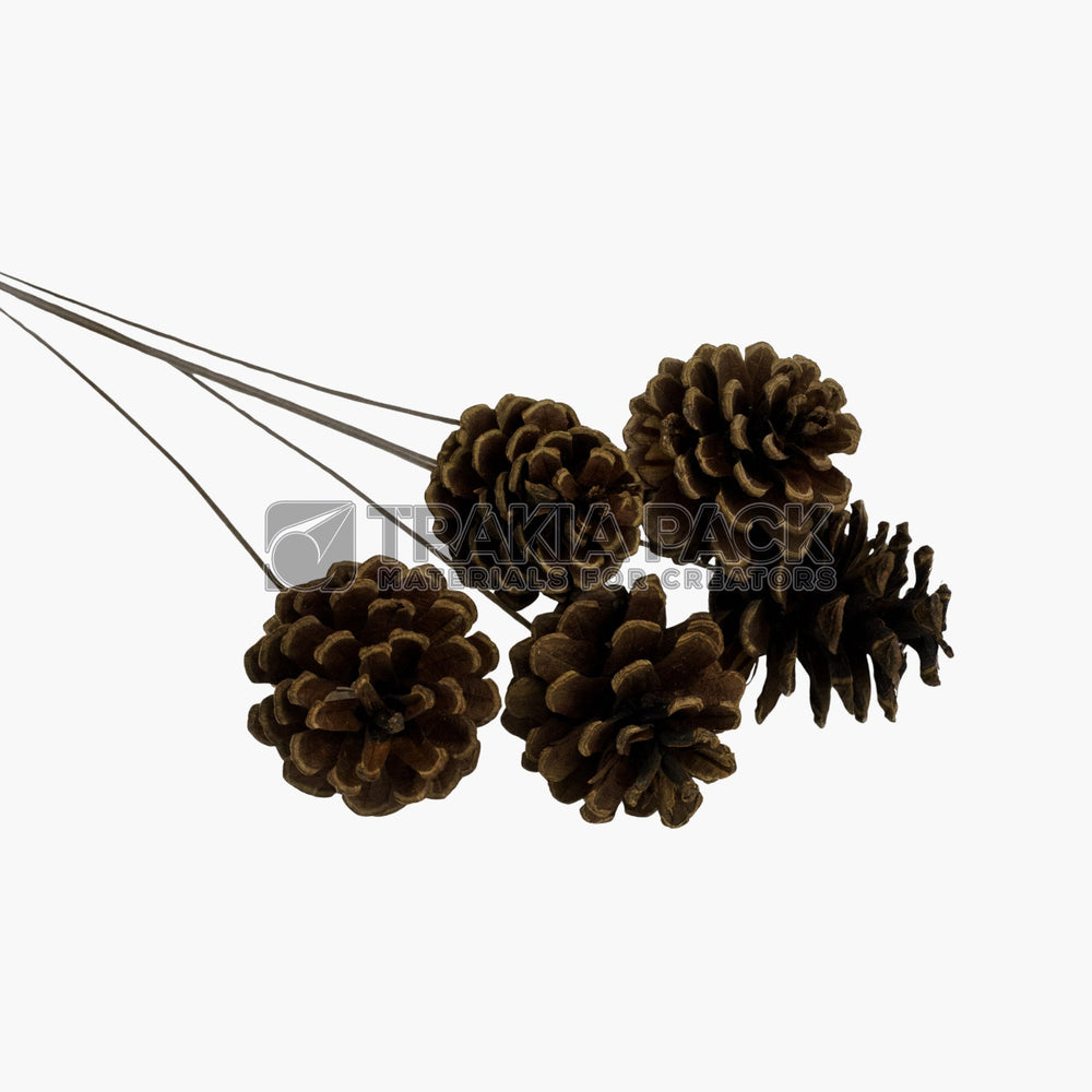 Декоративни шишарки на пръчка, комплект 5 броя с дължина 50 см, подходящи за сезонни аранжировки и флорална декорация.