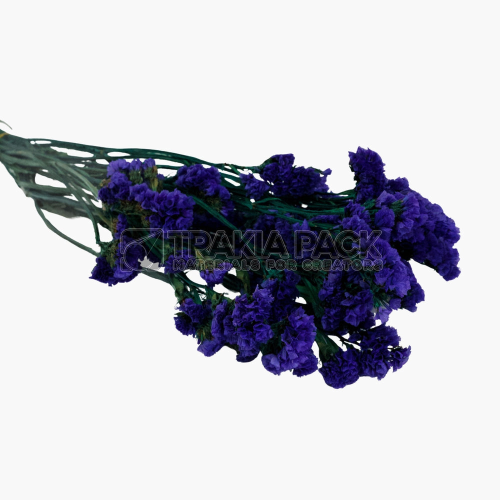 Декоративна суха статица в син цвят, дължина 70 см и тегло 110 гр, идеална за дълготрайни флорални композиции.