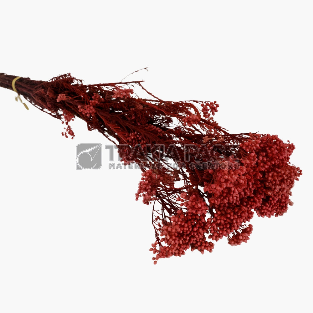 Декоративно сухо цвете с малки топченца в червен цвят, дължина 70 см и тегло 110 гр, подходящо за аранжировки и декор.