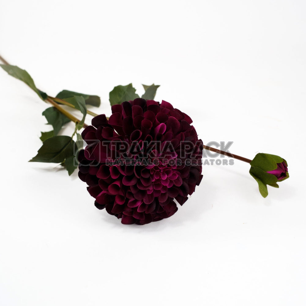 Изкуствена далия в цвят бордо с дължина 79 см, подходяща за луксозни и стилни флорални аранжировки.