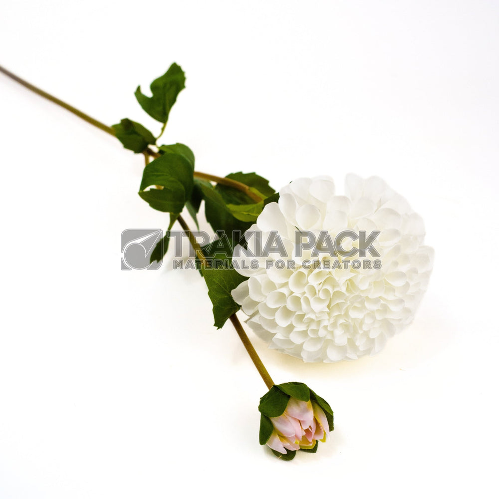 Декоративна далия в бял цвят с дължина 79 см, подходяща за елегантни букети и интериорен декор.
