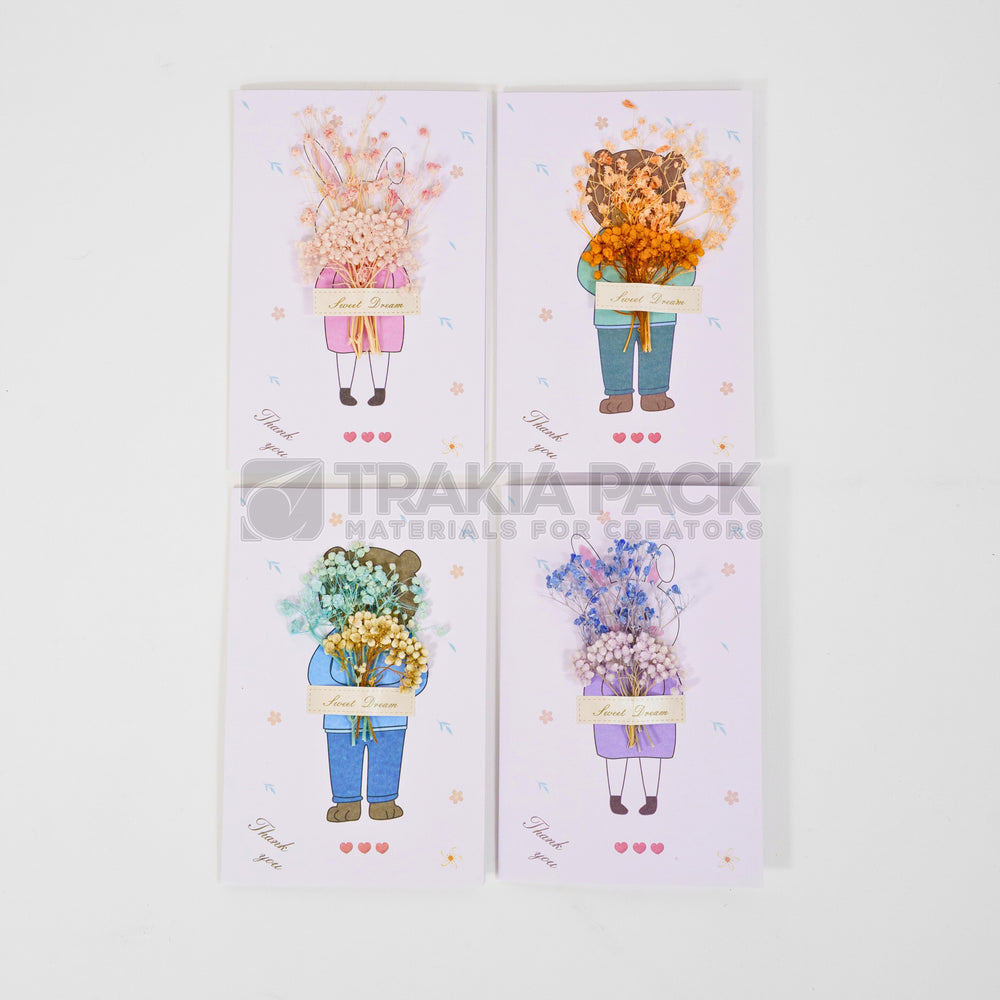 Сет от 4 броя 3Д картички със сухо цвете Животно.