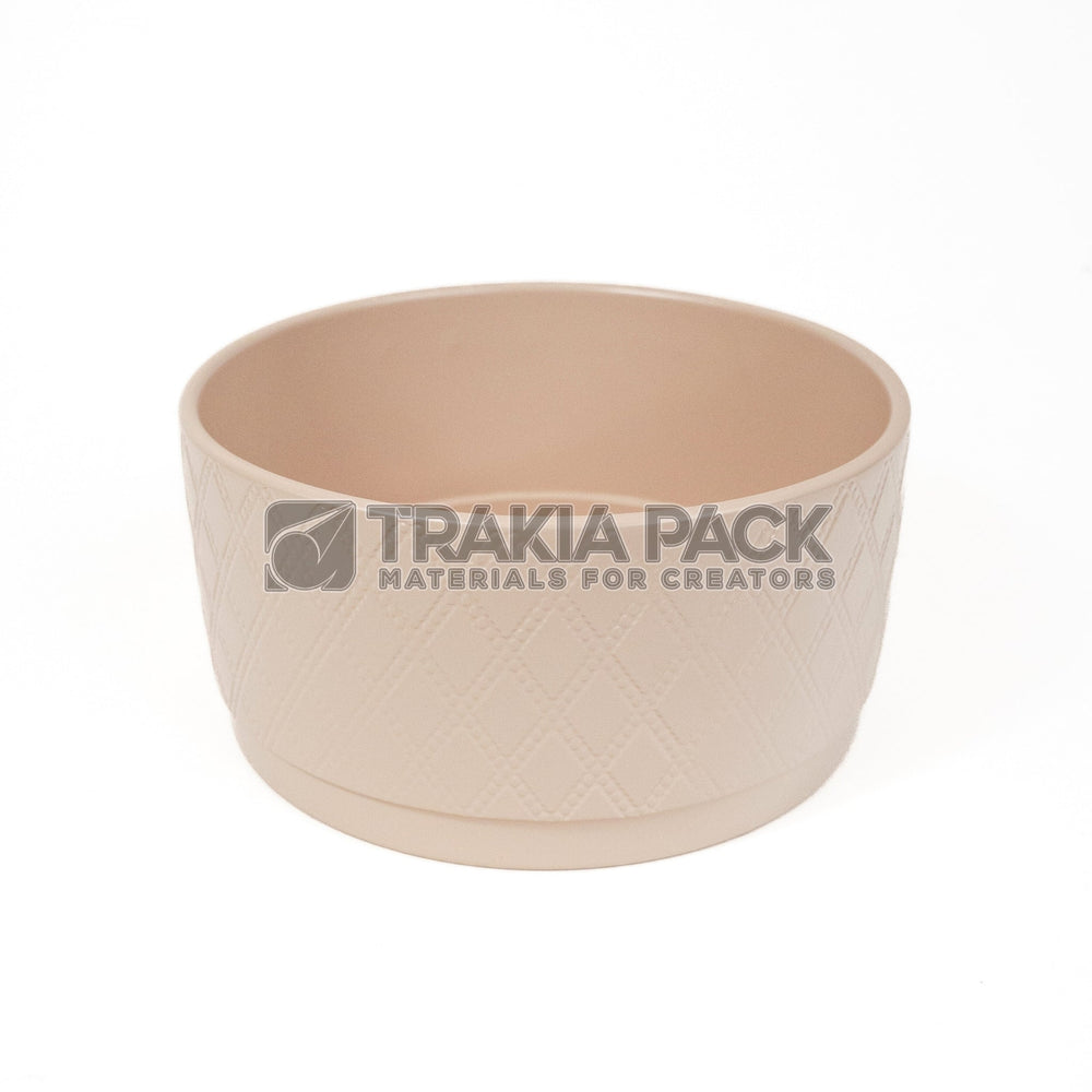 Розова плоска кръгла кашпа 22х11см, подходяща за ярки и модерни сукулентни аранжировки. Перфектна за цветарски магазини с модерна визия.