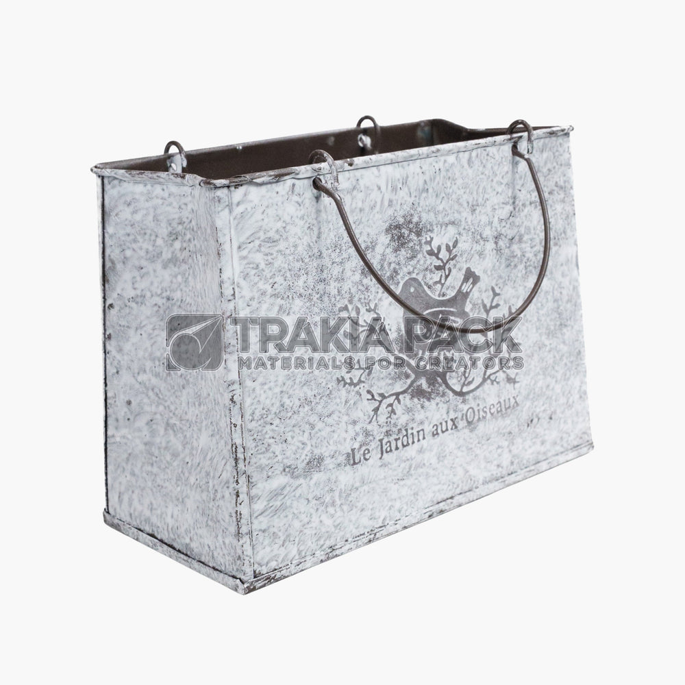 Голяма метална чанта с птица в бял цвят, размер 19х9х14 см, подходяща за стилни цветни аранжировки.