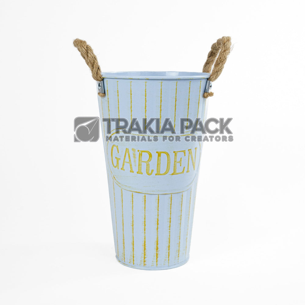 Метална канта Гардън в син цвят, размер 25х15 см, идеална за свежи цветя и декоративни композиции.