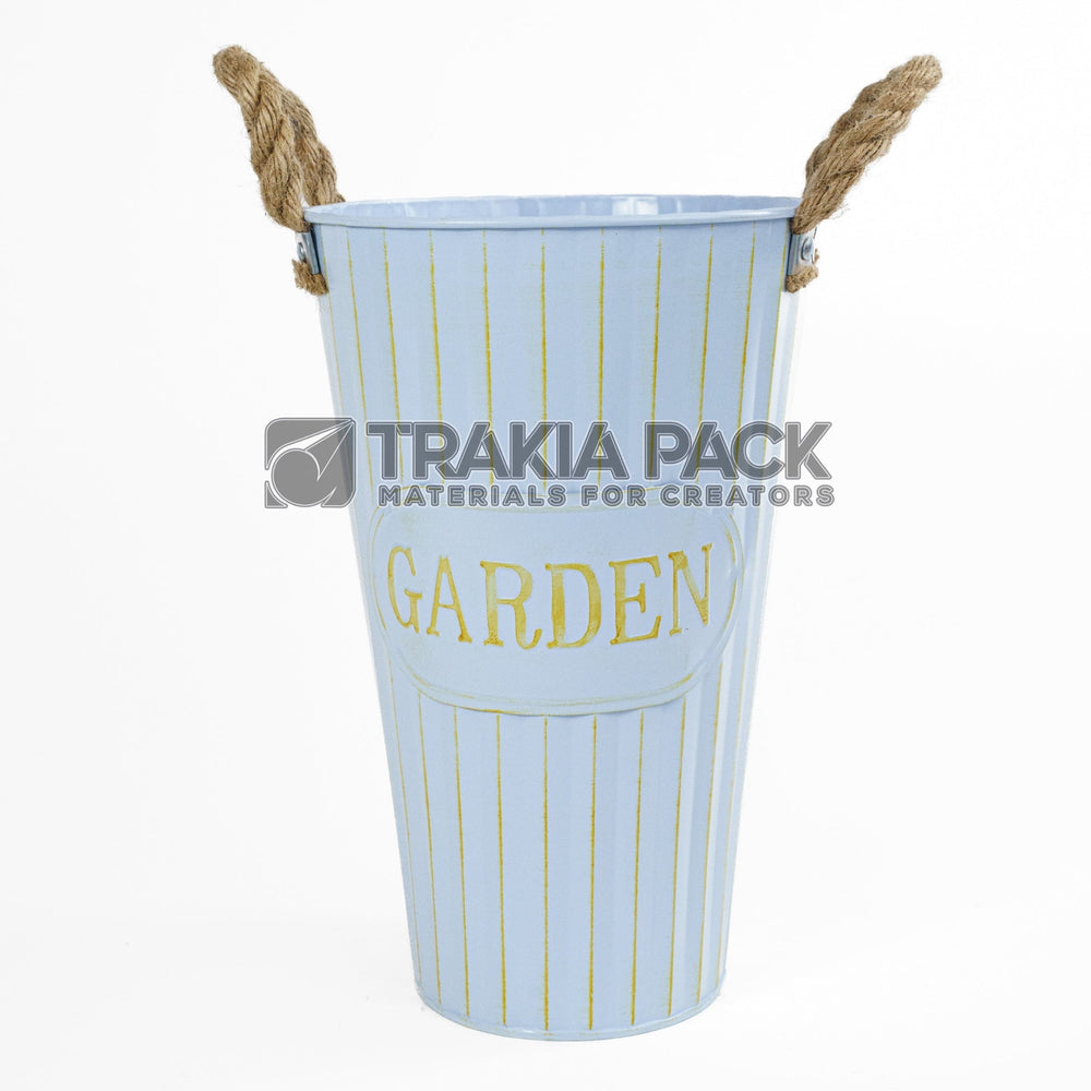 Метална канта Гардън в син цвят, размер 30х18 см, подходяща за по-големи цветни аранжировки и декорация.