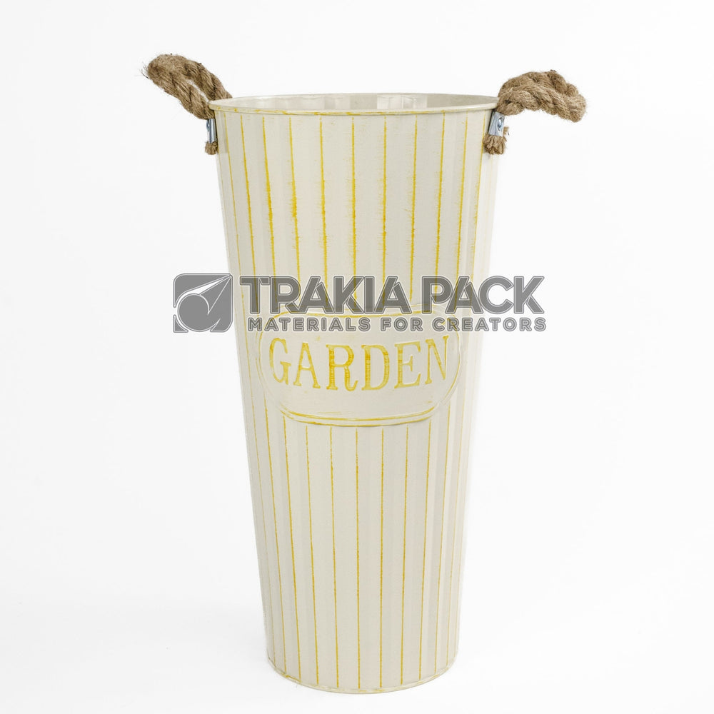 Голяма метална канта Гардън в жълт цвят, размер 40х20 см, идеална за впечатляващи цветни композиции.