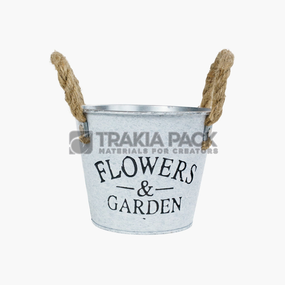 Метална кофичка с канапена дръжка 13х12 - бяла
