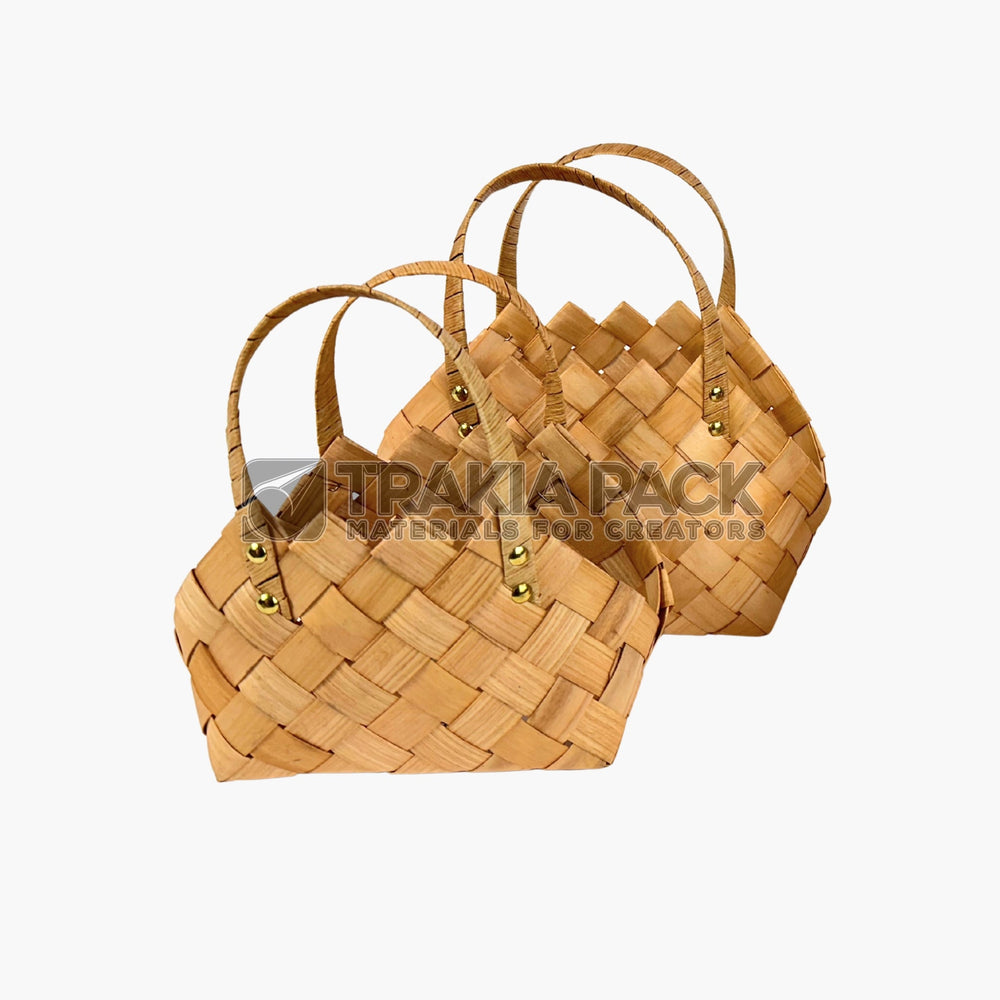 Комплект от две плетени чанти в натурален цвят с размер 29 см, подходящи за цветни и подаръчни аранжировки.