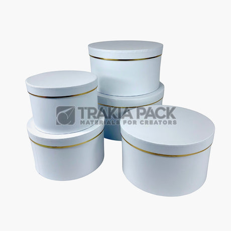 32.00 лвЕдинична цена /НеналичноКръгли кутии със златен кант 5бр/30х16см - бели