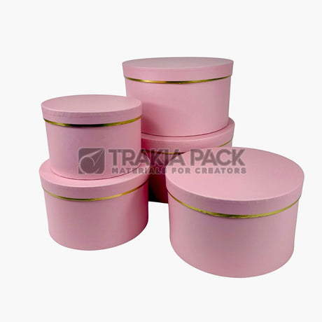 55.00 лвЕдинична цена /НеналичноКръгли кутии със златен кант 5бр/30х16см - розови