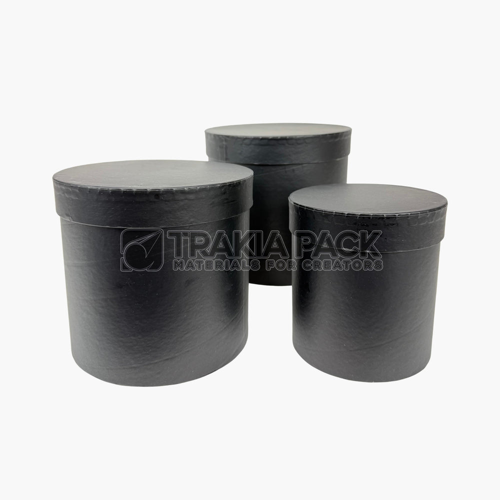 Комплект от 3 броя черни кутии, като най-голямата е с размер 17х18см. Идеални за различни флорални аранжировки или опаковане на подаръци.