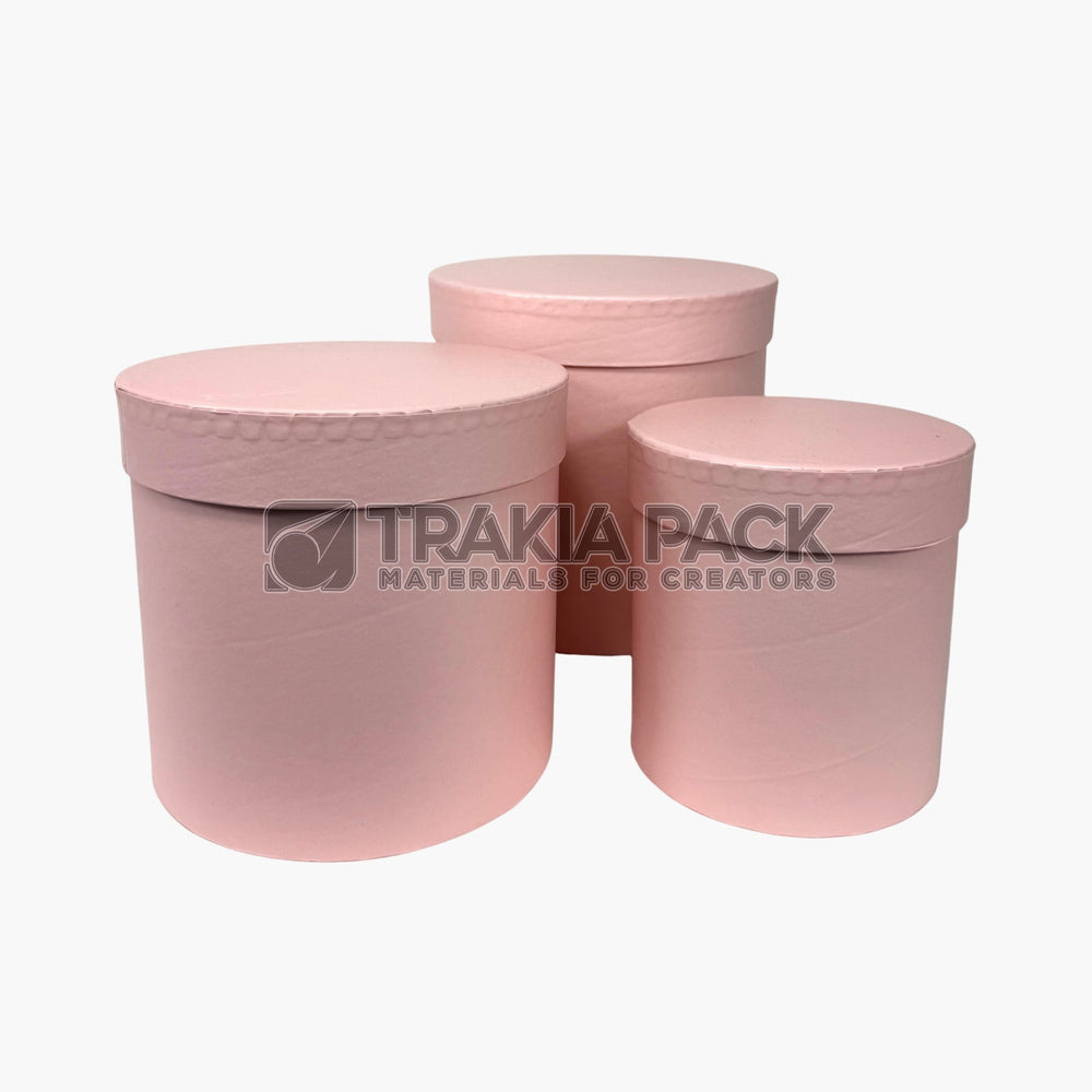 Комплект от 3 броя розови кутии, като най-голямата е с размер 17х18см. Идеални за различни флорални аранжировки или опаковане на подаръци.
