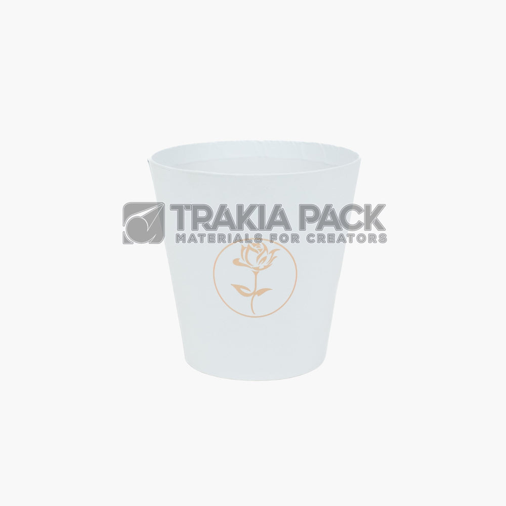 Бяла картонена кутийка с размер 11х11см, подходяща за аранжиране на малки цветни композиции.