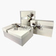 Комплект от 3 големи кутии с панделка в цвят екрю, подходящи за цветя и подаръчни композиции. Размери: 39х28х15см; 37х26х12,5см; 35х24х10см.