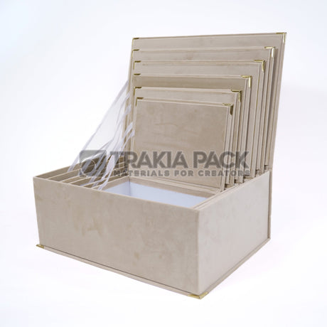 69.00 лвЕдинична цена /НеналичноКутии правоъгълни велурени 6бр/ 39,5х27,5х15см - екрю
