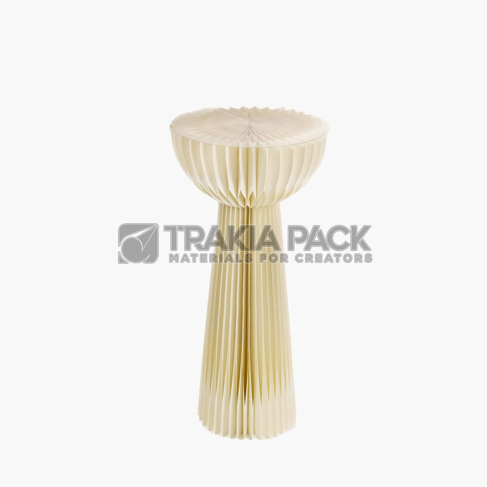 Сгъваема маса обла 80см, в цвят екрю, изключително здрава, практична и подходяща за украса на събития. Към всяка маса е включен и плексигласов кръг, който се поставя отгоре като основа.