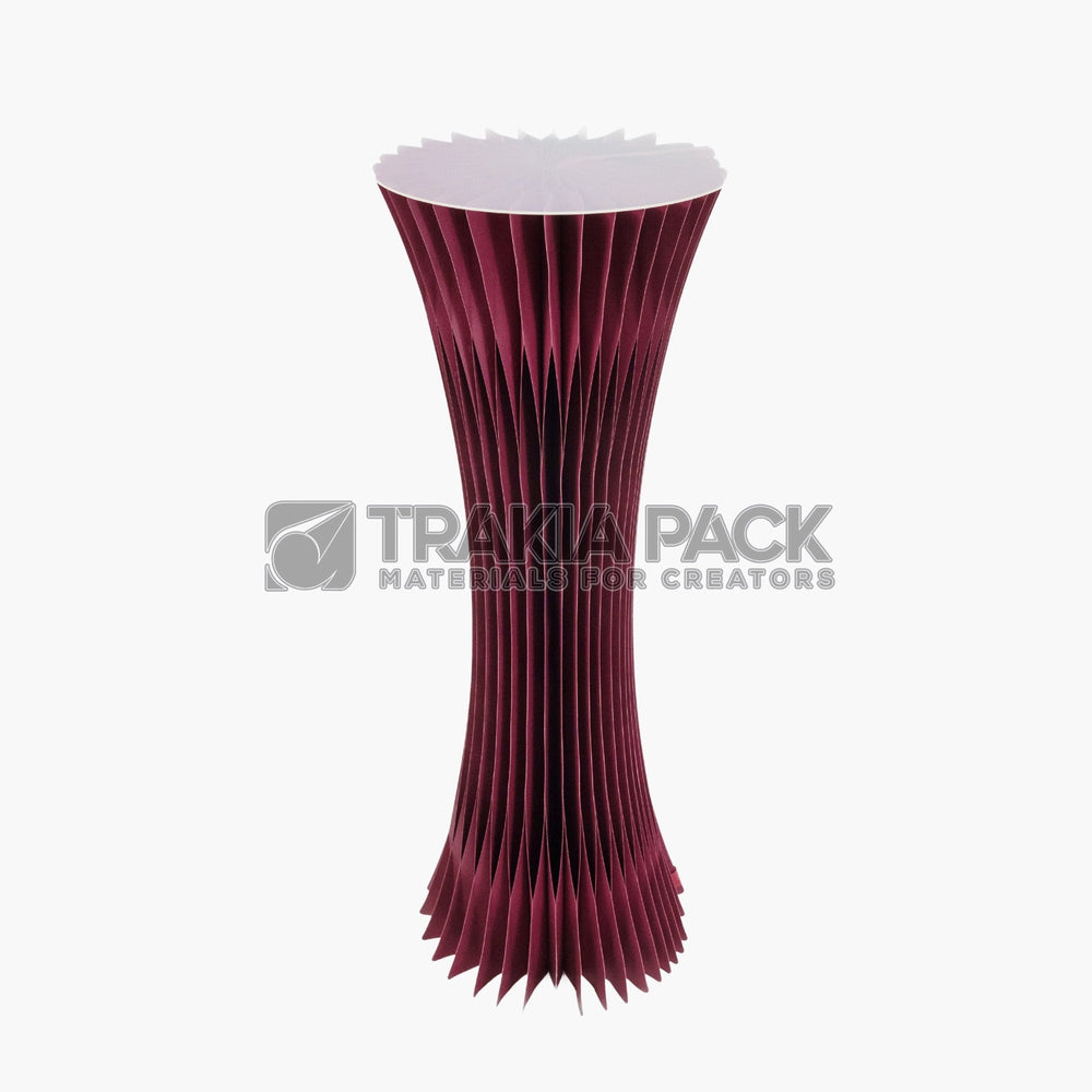 Сгъваема маса стеснена 100см, в цвят бордо, изключително здрава, практична и подходяща за украса на събития. Към всяка маса е включен и плексигласов кръг, който се поставя отгоре като основа.