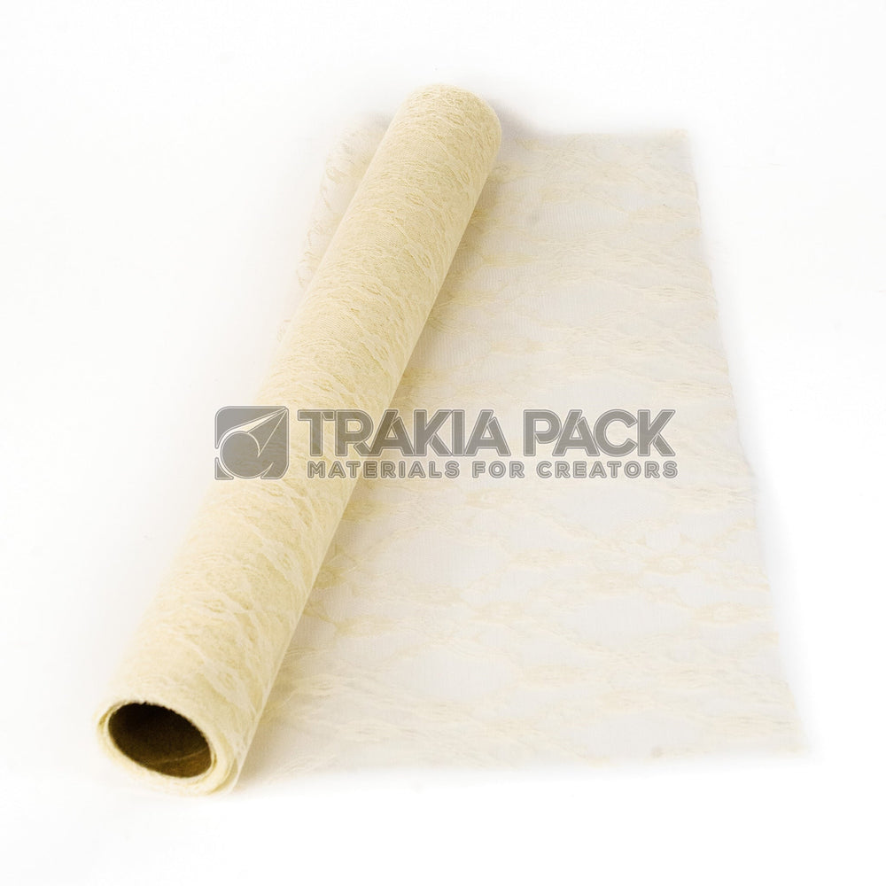 Нежна мрежа в цвят екрю, размер 50 см x 4,5 м, подходяща за романтични букети и флорални украси.
