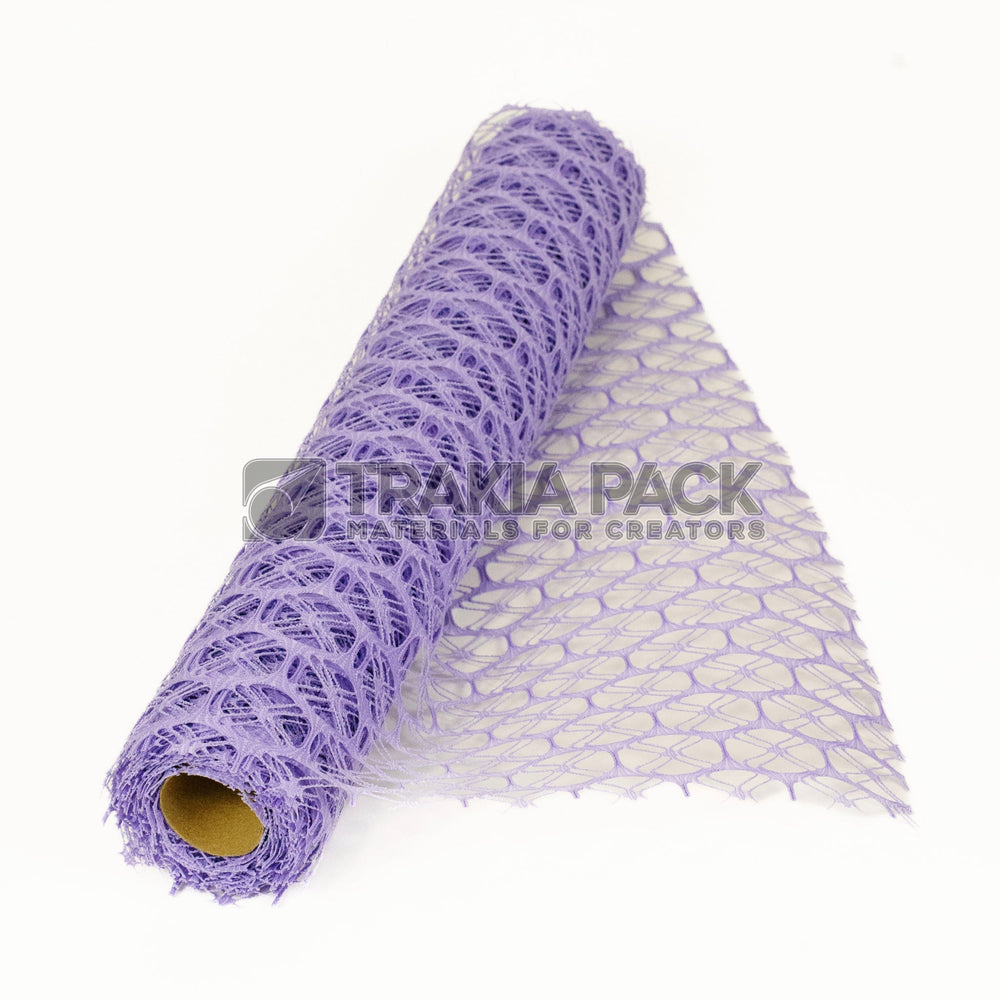 Ролка светлолилава едра мрежа, 50 см x 4,5 м – подходяща за ефирни букети, пролетни декорации и елегантни подаръци.