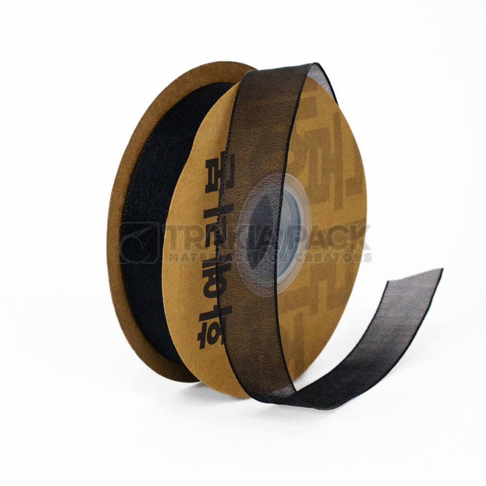 Класическа органза панделка 2,3см/40м в черно. Идеална за луксозни аранжировки, опаковки и драматични акценти.