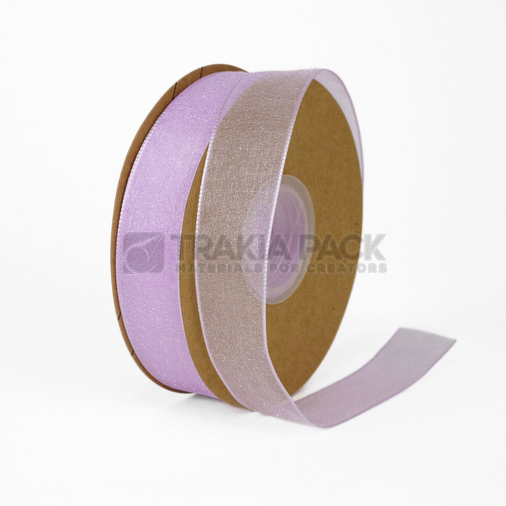 Панделка органза 2,3см/40м в светло лилаво. Подходяща за нежни букети, сватбени украси и романтични опаковки.