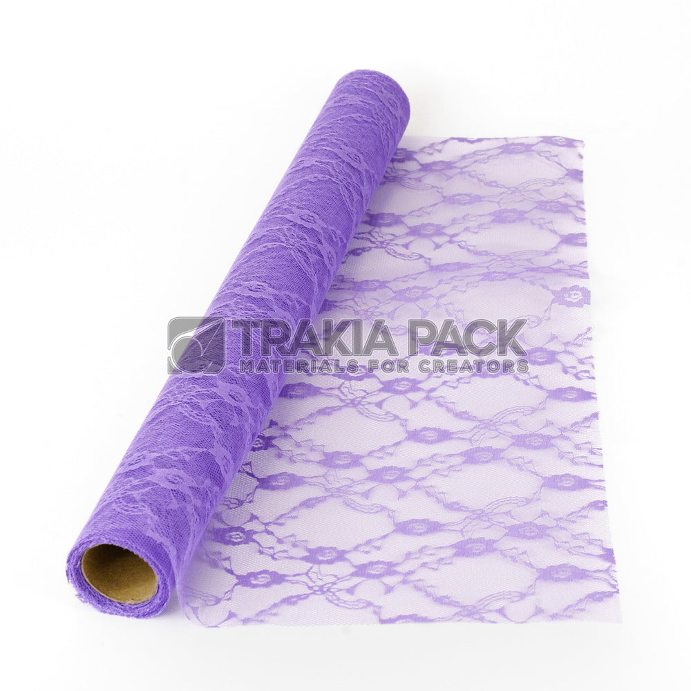 Мрежа с розички в светло лилаво, ширина 50 см и дължина 4,5 м – перфектна за нежни букети и празнични украси.