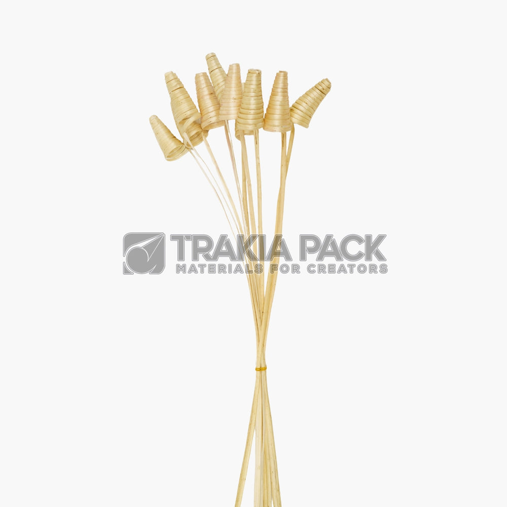 Декоративна спирала тип конус в натурален цвят, комплект 10 броя с дължина 60 см, подходяща за натурални и рустик флорални аранжировки.
