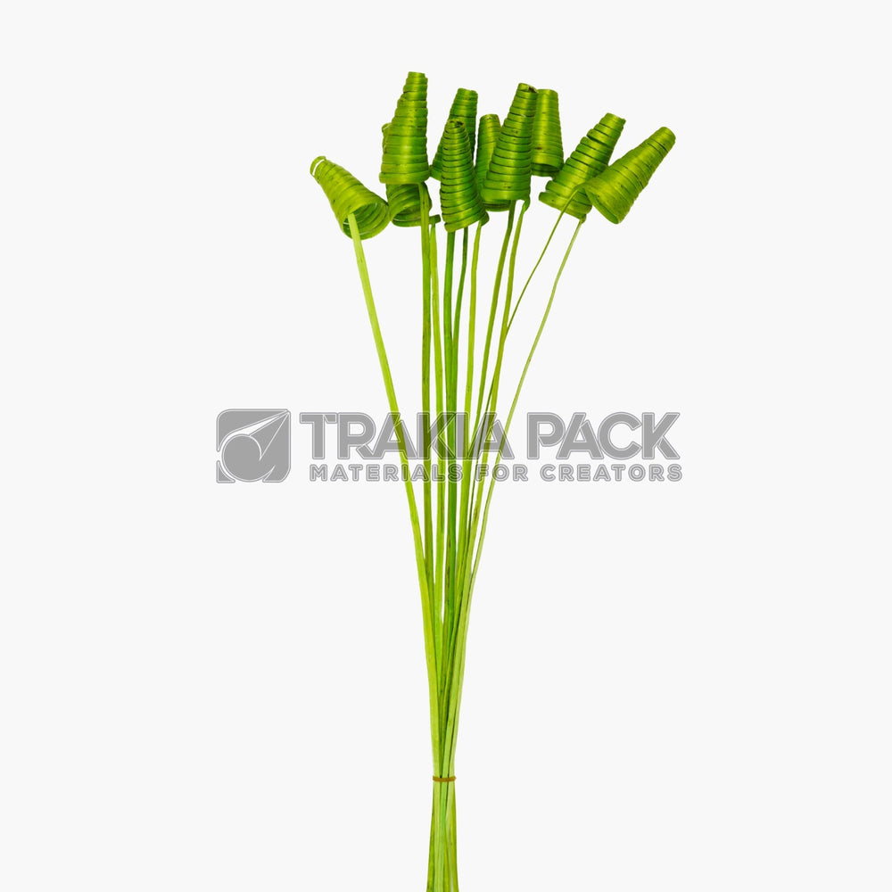 Декоративна спирала тип конус в зелен цвят, комплект 10 броя с дължина 60 см, подходяща за натурални флорални композиции.