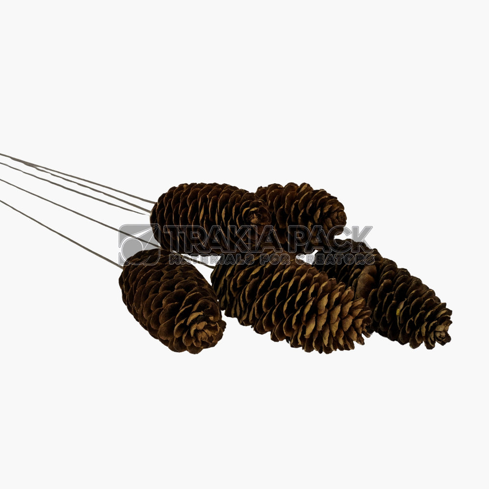 Издължени декоративни шишарки на пръчка, комплект 5 броя с дължина 50 см, идеални за зимни и натурални флорални композиции.