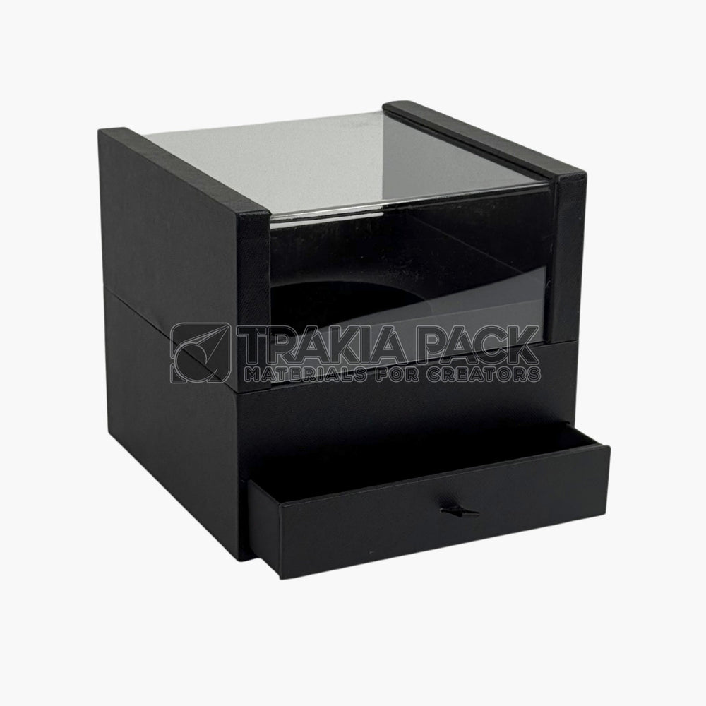 Отваряща кутия с чекмедже и прозрачен капак 17,5х17,5х16см - черна