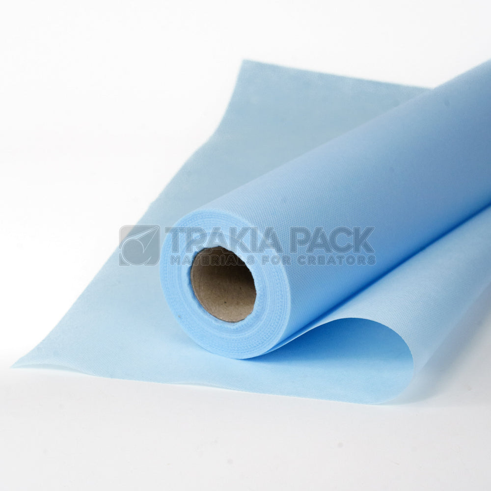 Текстил в бебешко синьо, 60 см × 18 м – подходящ за нежни букети и декоративни оформления.