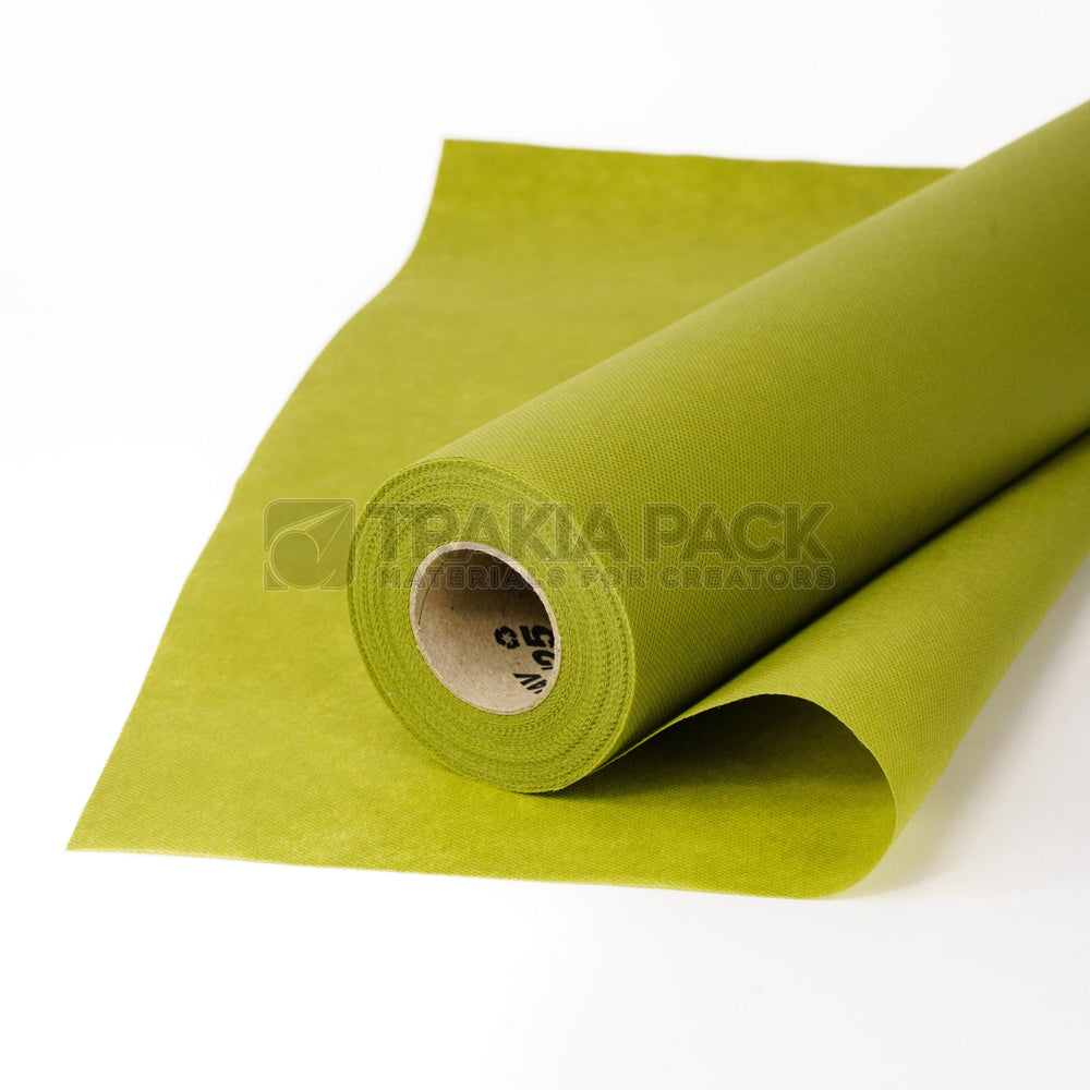 Текстил в цвят грахово зелено, 60 см × 18 м – подходящ за свежи букети и декорации.