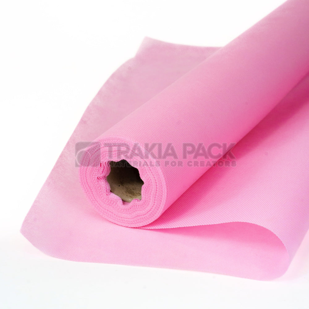 Светлорозов текстил, 60 см × 18 м – подходящ за нежни букети и подаръчни опаковки.