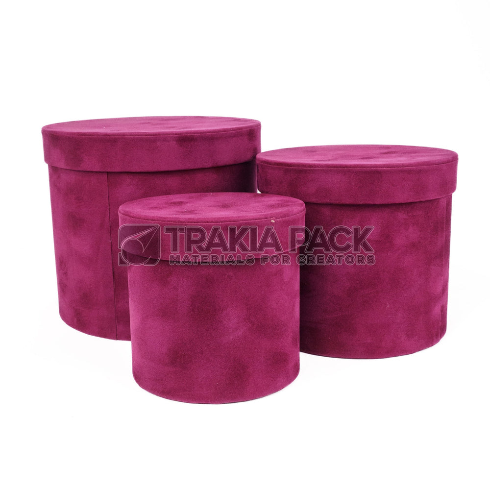 Комплект от 3 броя велурени кутии с капак в малинов цвят. Идеални за изработване на елегантни flower box аранжировки, букети и празнични декорации.